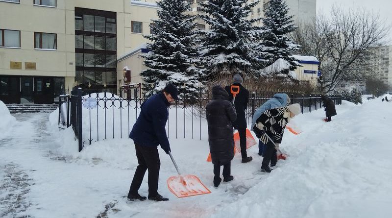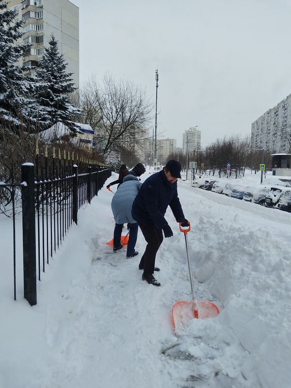 Депутаты Совета депутатов муниципального округа Митино в городе Москве всегда принимают активное участие в уборке снега на своих территориях по основному месту работы.